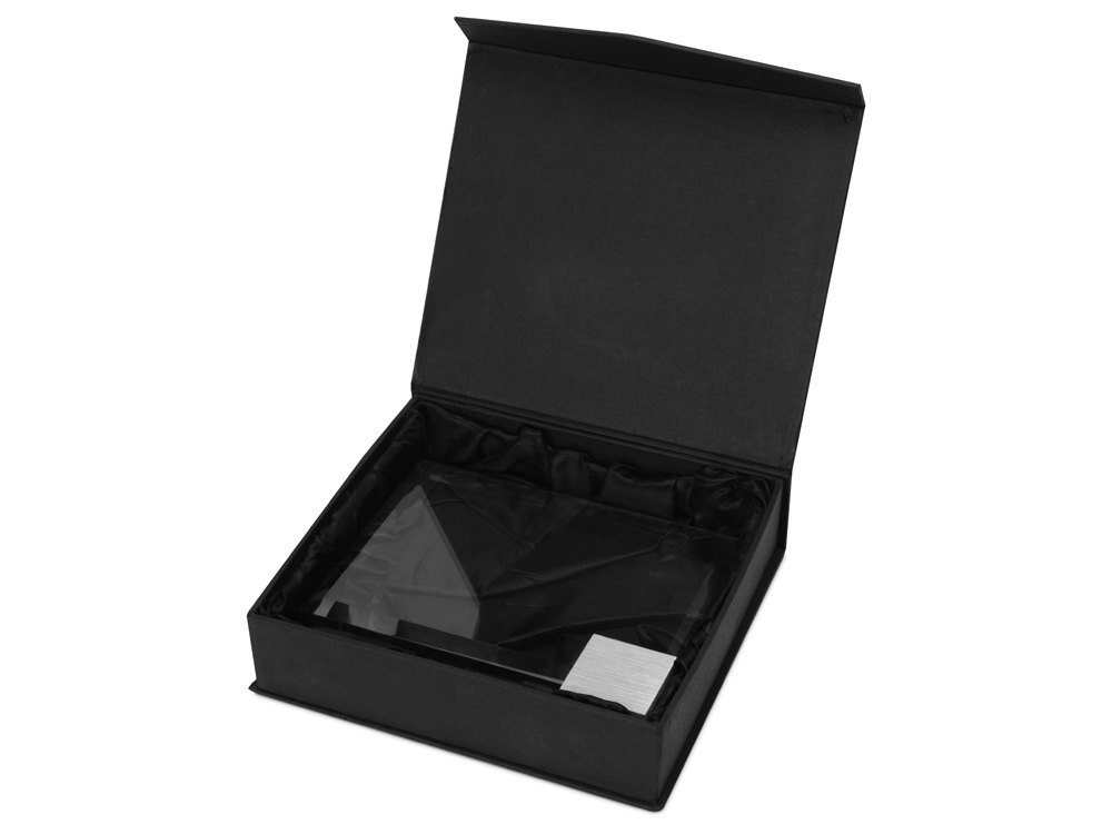 Минималистичная стеклянная награда с небольшим угловым постаментом из стали (не съемный). Внушительная площадь для нанесения обеспечивается простотой формы и маленьким размером постамента.
