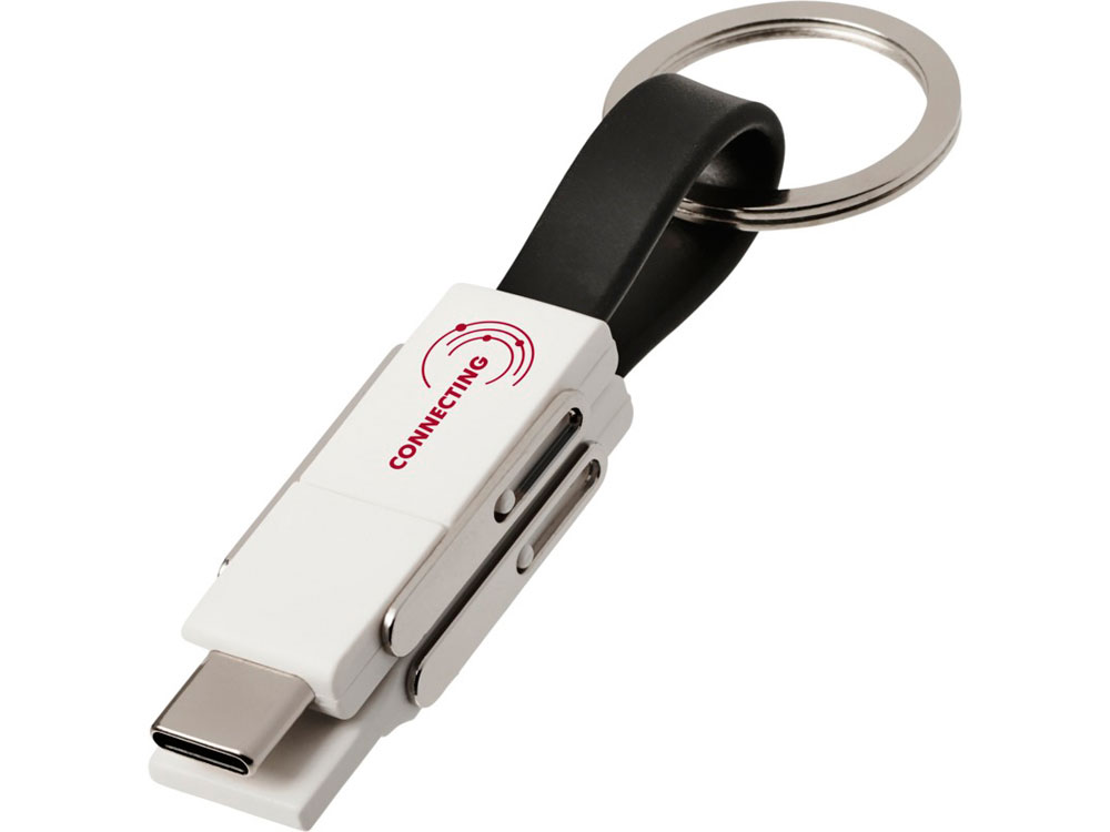 Кабель 4 в 1 позволяет заряжать любые устройства. Он оснащен разъемами USB Type A, Type-C и наконечником 2 в 1, совместимым как с устройствами iOS, так и с устройствами Android. Может использоваться как для зарядки, так и для передачи данных.