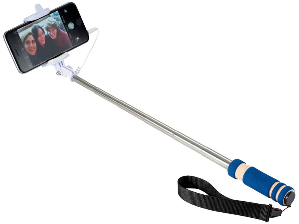 Мини селфи палка со шнурочком. Кнопка на ручке позволит быстро фотографировать. Можно выдвигать на различное расстояние. Идеальный аксессуар для путешествий. Упакована в коробку. Металл/ EVA.