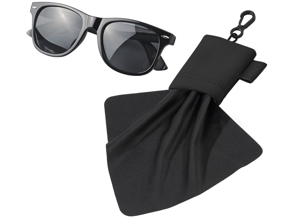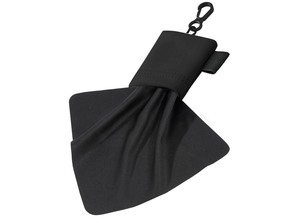 Очищающая салфетка Clear из микрофибры в чехле. Очищающая салфетка из микрофибры для протирания очков, мобильных телефонов, экранов компьютеров и многого другого. Упакована в чехол с карабином для удобной переноски. Ультратонкая микрофибра. 0,010.