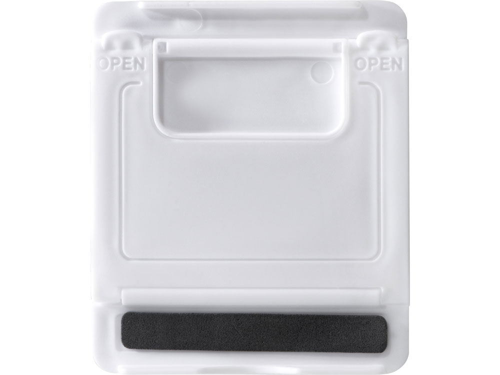 Компактная складная подставка позволяет расположить смартфон под комфортным углом наклона, что позволяет пользоваться гаджетом одной рукой. Это помогает не тратить время на лишние действия, чтобы проверить почту или мессенджеры как во время работы, так и в обеденный перерыв. Логотип можно нанести на фронтальной и обратной стороне, что делает его максимально заметным.