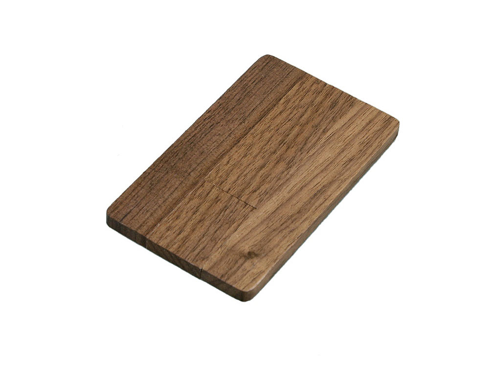 Флеш-накопитель в виде деревянной карточки с выдвижным механизмом, объем памяти 8 Гб. Деревянный корпус.