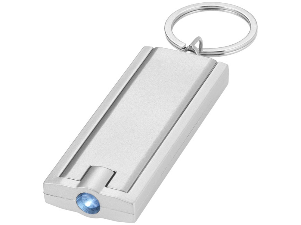 Брелок-фонарик Castor. Брелок с ярким светодиодным фонариком с кнопкой. Металлическое кольцо для ключей. Батарейки включены в комплект. АБС-пластик.
