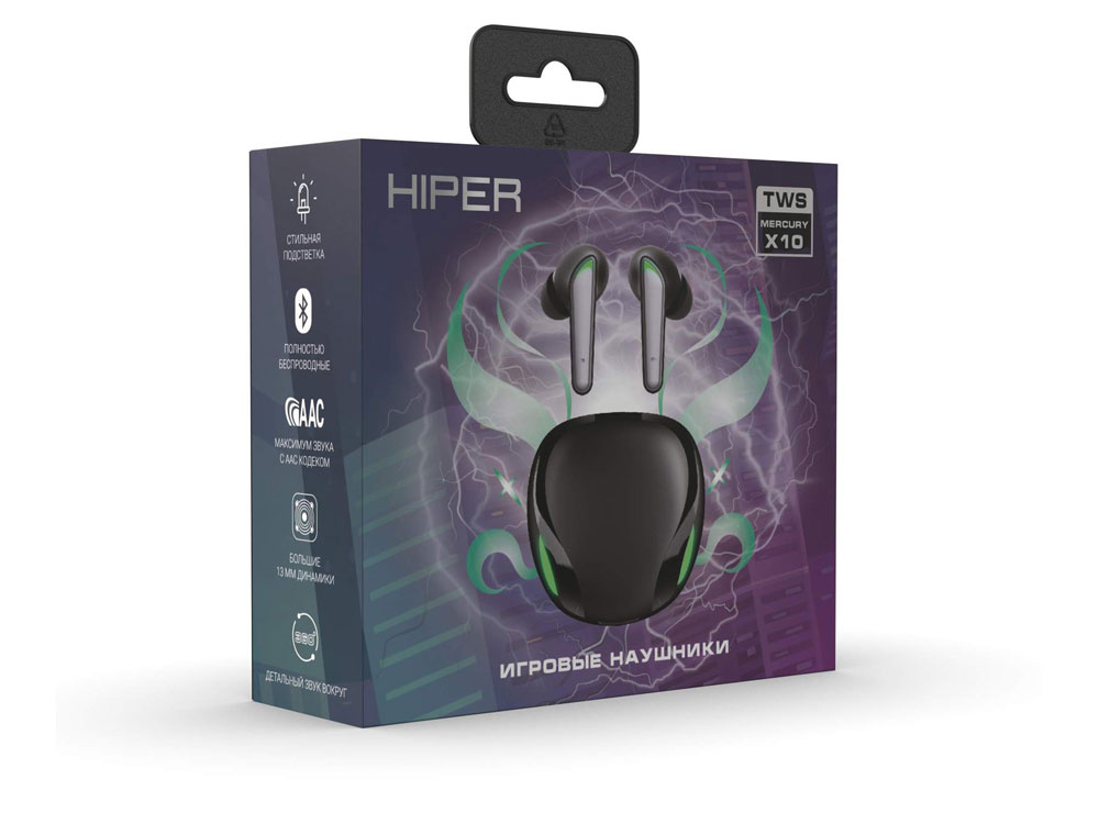HIPER TWS Mercury X10 – это беспроводные наушники для тех, кто предпочитает особый, неповторимый стиль и футуристичный дизайн. Вы оцените невероятное удобство в сенсорном управлении музыкой, а также в переключении режимов игры, музыки или звонка.