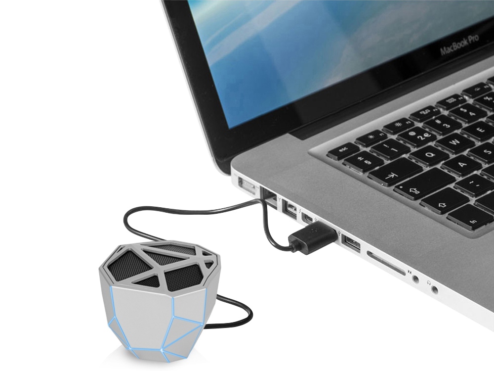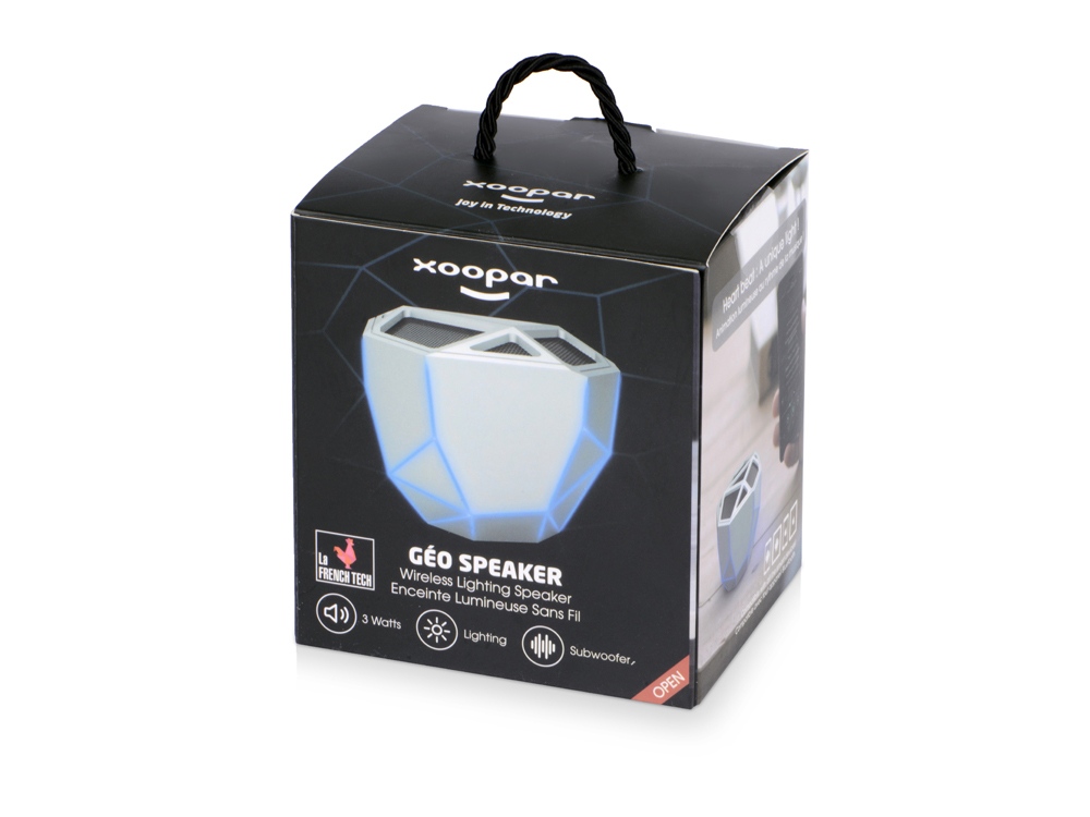 Беспроводной портативный динамик Geo — ультрасовременное решение для прослушивания аудио с функцией расширенных басов. Дизайн колонки выполнен в стиле low-poly, главная особенность которого — необычная геометрия форм. Визуальный эффект усиливается одноцветной подсветкой колонки, яркость которой меняется в зависимости от интенсивности звука.