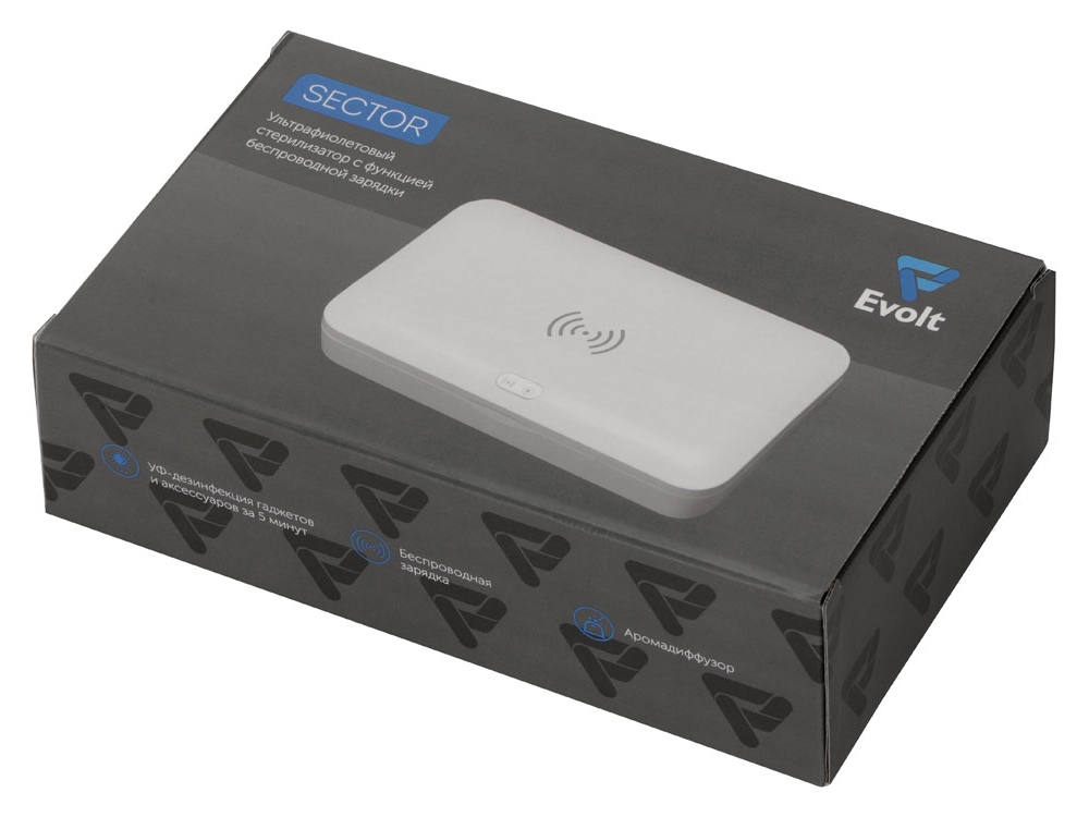 Универсальный стерилизатор эффективно уничтожает 99,9% вирусов и бактерий со всех поверхностей помещенных в него предметов. Подходит для стерилизации смартфонов, часов, наушников, ключей, масок, канцелярии и других небольших вещей. Стерилизатор Sector работает от USB, источником может быть ноутбук, ПК, сетевой адаптер или внешний аккумулятор (повербанк). Чтобы начать процесс дезинфекции достаточно положить предметы внутрь, закрыть крышку и нажать кнопку. Отсек для стерилизации 19,2 х 10 х 1,2 см. Стерилизация автоматически завершится через 5 минут. УФ-стерилизатор оснащен автоматической системой безопасности – УФ-лампы отключаются при открытии крышки. В центре крышки расположен модуль беспроводной зарядки. Чтобы активировать функцию ароматерапии - просто добавьте 2-3 капли эфирного масла в ячейку аромадиффузора.