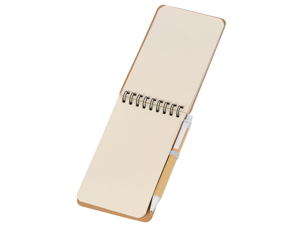 Компактный блокнот на пружине, с блоком на 70 нелинованных страниц в комплекте с шариковой ручкой с синими чернилами. Удобный, функциональный и доступный аксессуар на каждый день.