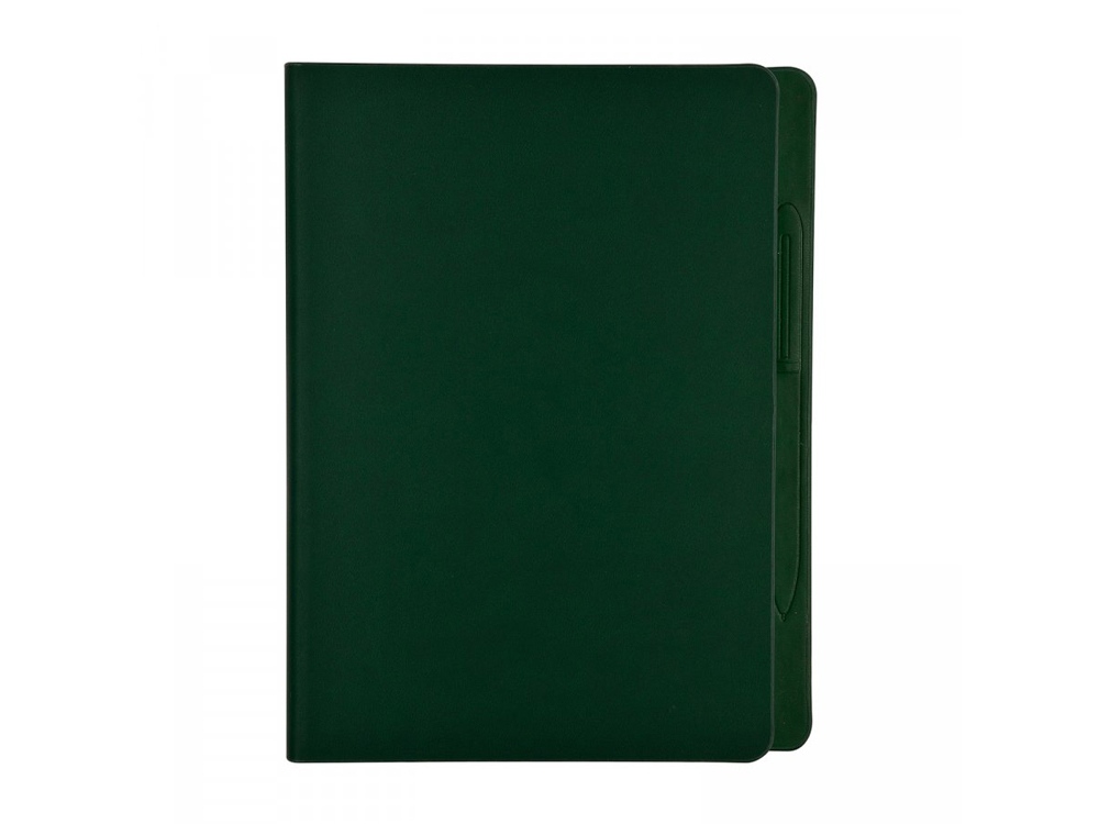 Скругленный угол обложки и блока, обрез окрашен в тон черной обложке. Покрытие обложки Soft Touch. Великолепная бумага 70 г/м. Скрытый магнит для металлической ручки. Ежедневник упакован в картонный полукороб и термопленку.
