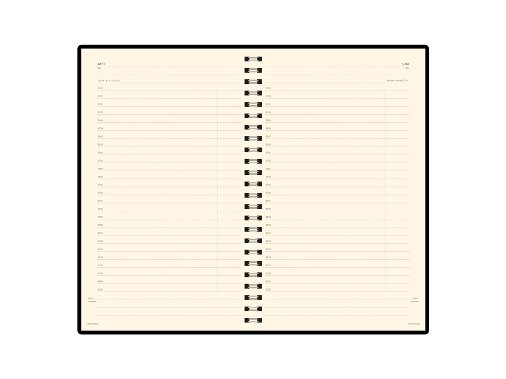 Ежедневник Milano от бренда Bruno Visconti - это сочетание элегантности и практичности. Закругленная обложка из классического переплетного материала - хорошая альтернатива натуральной коже. Форма обложки подчеркнута аккуратной строчкой по краю. Внутренний блок формата А5 на современном креплении – полускрытом гребне – содержит 272 страниц. Для них подобрана первосортная бежевая бумага повышенной плотности (70 г/кв м). Помимо рабочих страниц в структуру блока включены телефонная книга и справочный раздел. На страницах для планирования есть удобная почасовая разбивка.