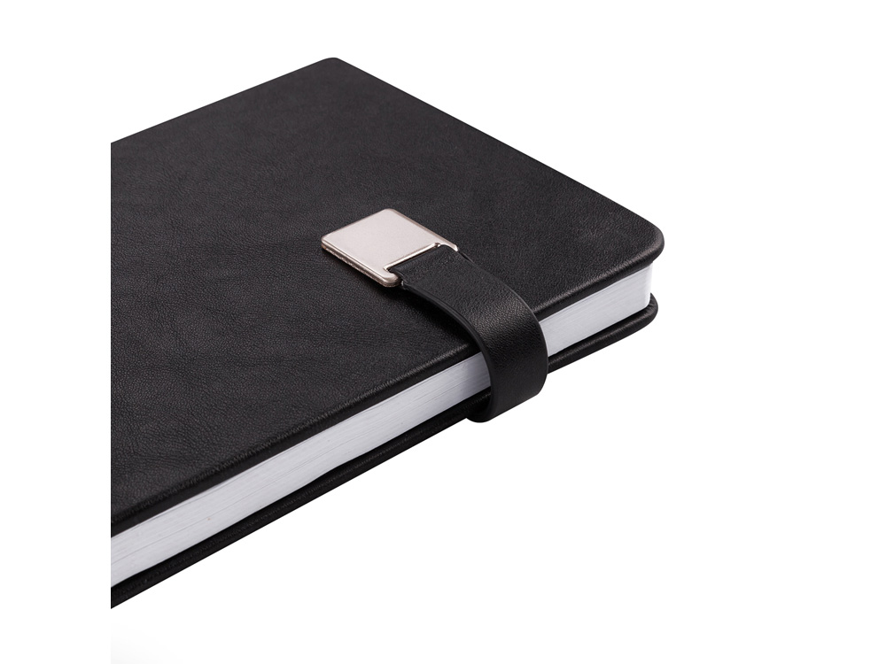 Твердую обложку из высококачественной искусственной кожи дополняет металлический хлястик на магните. Ляссе в цвет обложки позволяет быстро найти нужную страницу. Блок в 272 страницы произведен из бежевой бумаги плотностью 70 г/кв.м и имеет раздел справочной информации на 19 страницах. Для удобства навигации все углы блока перфорированы, имеют скруглённую форму.