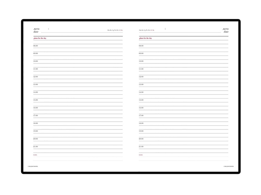 Твердая обложка со слегка закругленными уголками выполнена из гладкого переплетного материала с приятной на ощупь поверхностью soft-touch. По контуру обложки проходит строчка, делающая акцент на форме ежедневника. Благодаря внутреннему набивному слою обложка выглядит объемнее и привлекательнее.
