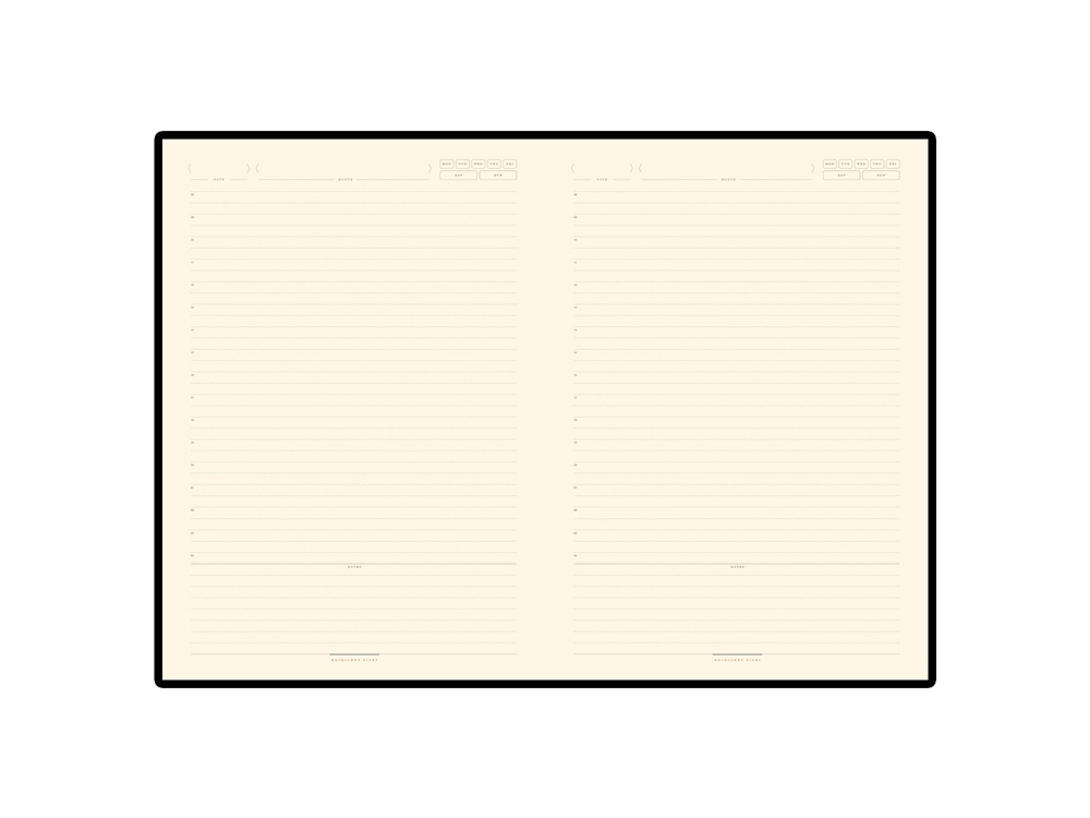 В ежедневнике Leggenda есть полезная справочная информация, а также 272 страницы для записи идей, мыслей и составления рабочих планов.. Для изготовления страниц используется качественный бежевый офсет повышенной плотности (70 г/кв м), который производится в Японии и подходит для всех видов чернил. Блок, отпечатанный в две краски, разлинован в линейку, где рядом с графами указано время. На форзаце обложки есть отдельный карман для хранения визиток, бумаг и записок.