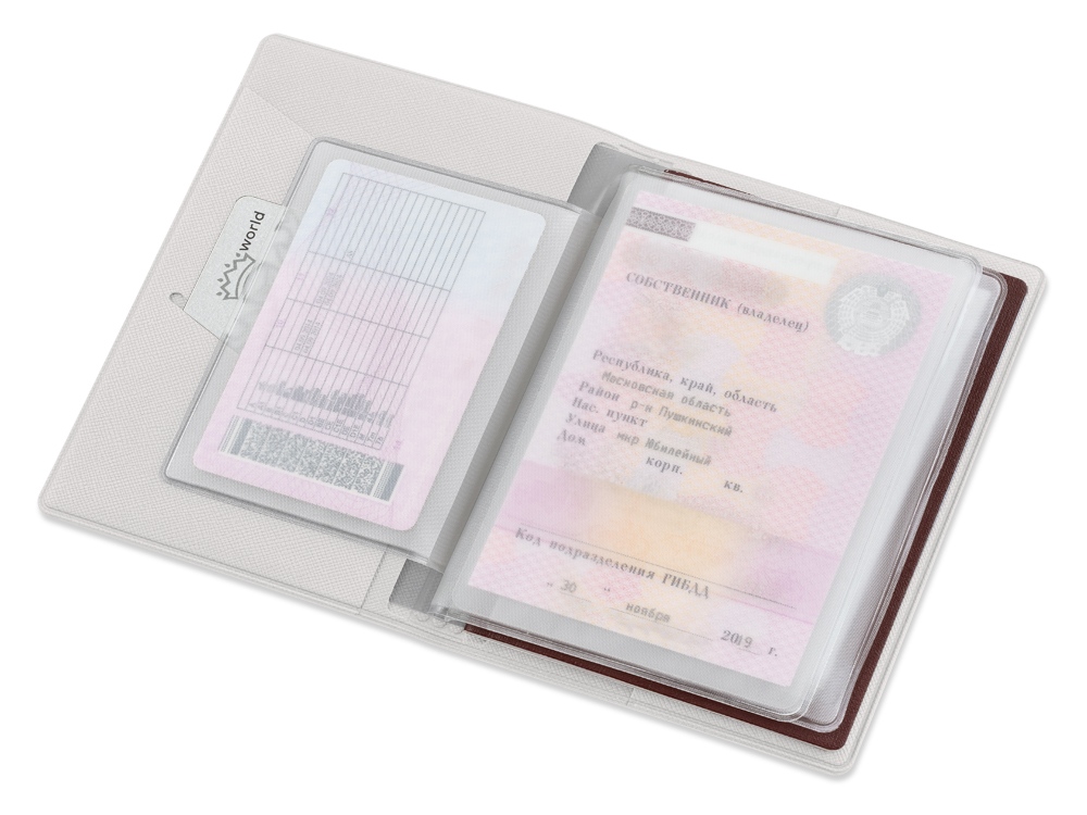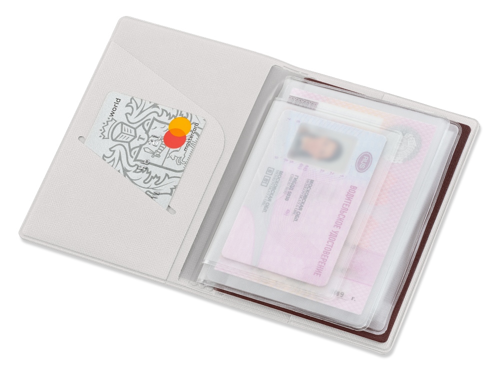 Внутренние вкладыши выполнены из пленки пвх и позволяют разместить: паспорт, свидетельство о регистрации тс, полис осаго, водительское удостоверение, также имеется кармашек для пластиковой карты.