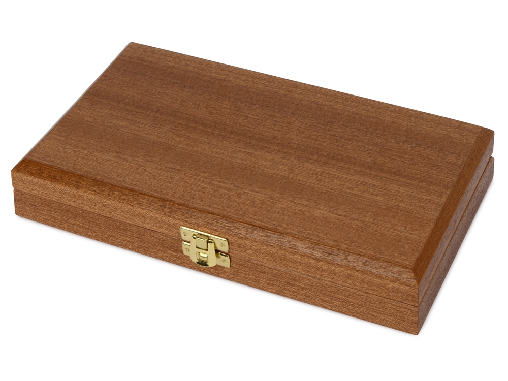 Набор, состоящий из визитницы и металлической закладки для книг в эффектной деревянной коробке, станет прекрасным подарком для руководителей, топ-менеджеров и ключевых клиентов. На позолоченной визитнице и закладке изображена российская государственная символика.