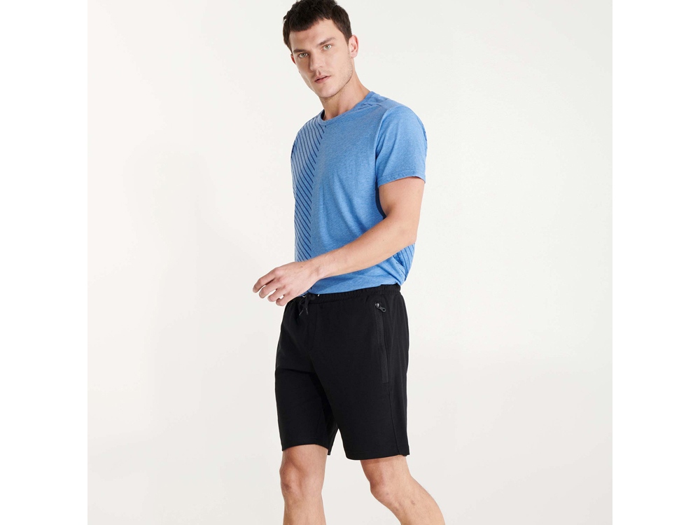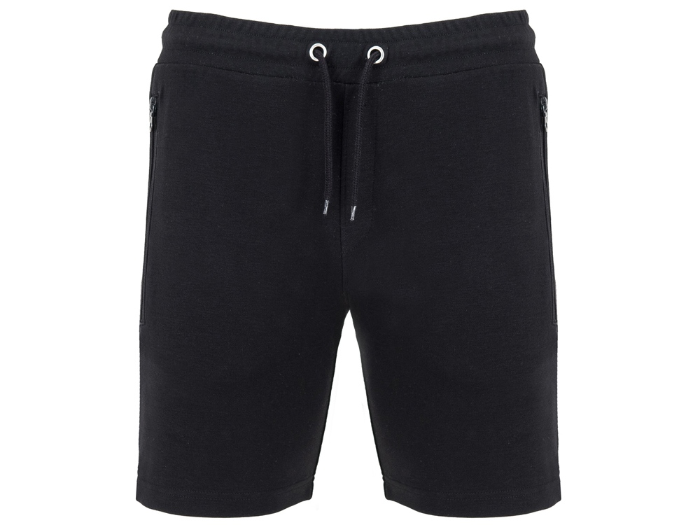 Шорты с эластичным поясом со шнурком и металлическими люверсами. Два боковых карманы на молнии с бегунком в тон. Лампасы по бокам в тон. Декоративный гульфик. Карман сзади с застежкой на кнопку.