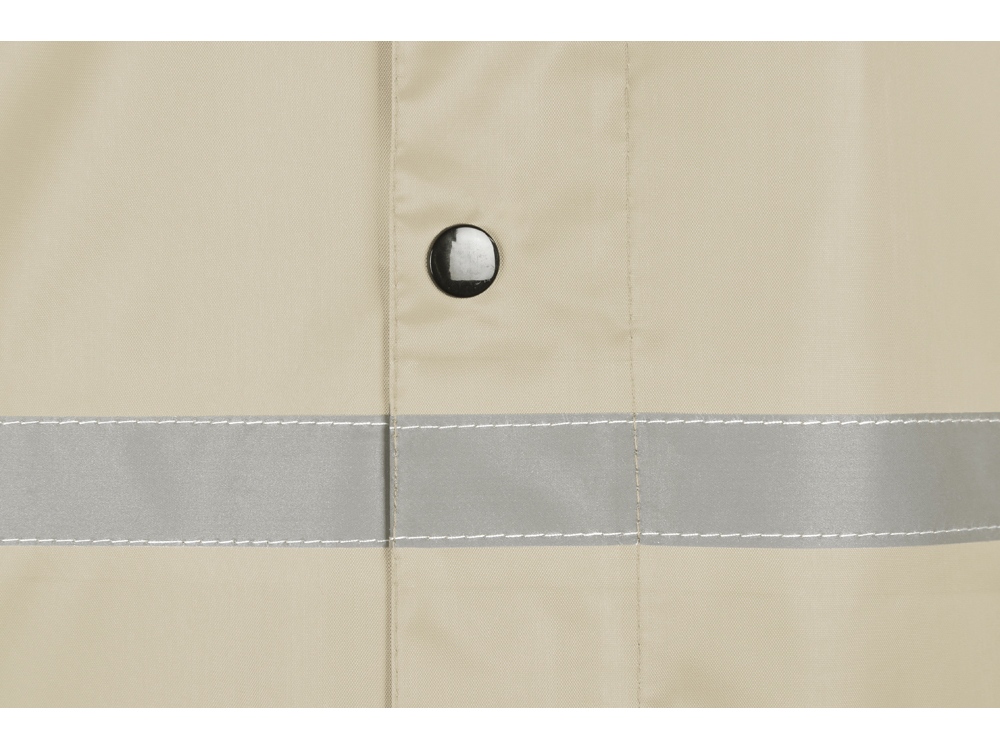 Светоотражающая тесьма на груди и спине делает человека в плаще заметным даже в темное время суток. Вместительные накладные карманы защищены сверху клапаном.