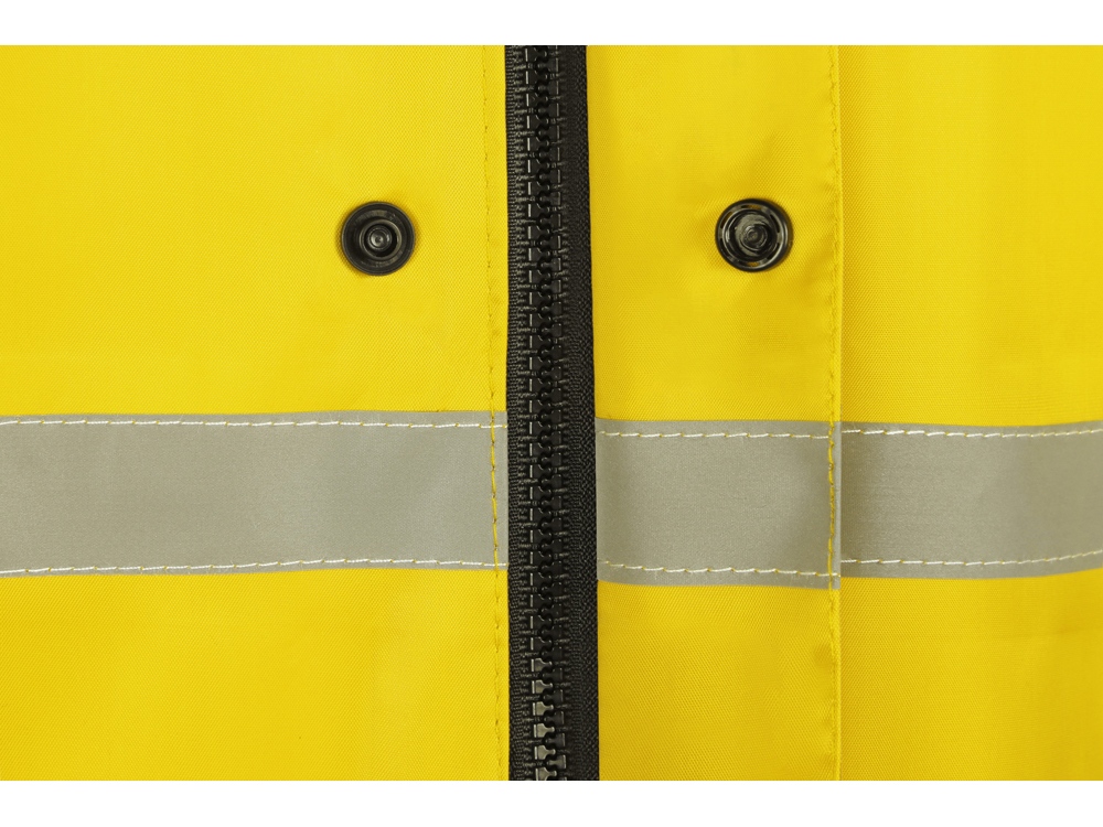 Светоотражающая тесьма на груди и спине делает человека в плаще заметным даже в темное время суток. Вместительные накладные карманы защищены сверху клапаном.