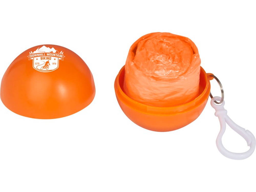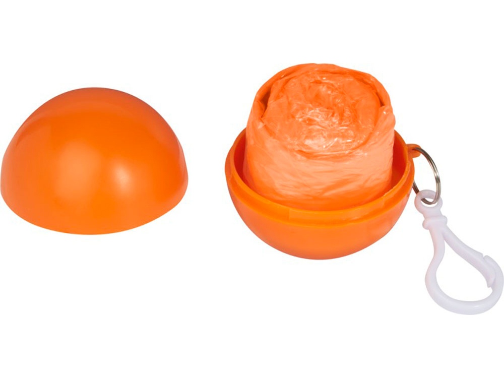 Дождевик. Дождевик с капюшоном универсального размера. Упакован в контейнер-брелок (диаметр 6 см). Крепится к брелоку. Помещается в маленький карман. Идеально дополнит сумку, рюкзак или емкость для питья. Нанесение возможно только на контейнере.
