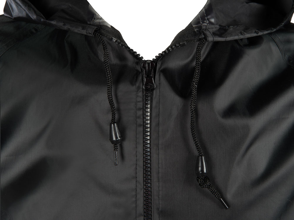 Рукав реглан обеспечивает комфортную посадку, не сковывает движения, что позволяет использовать дождевик для активного отдыха, а резинка по низу помогает сохранить тепло, препятствуя попаданию влаги и защищая от ветра.