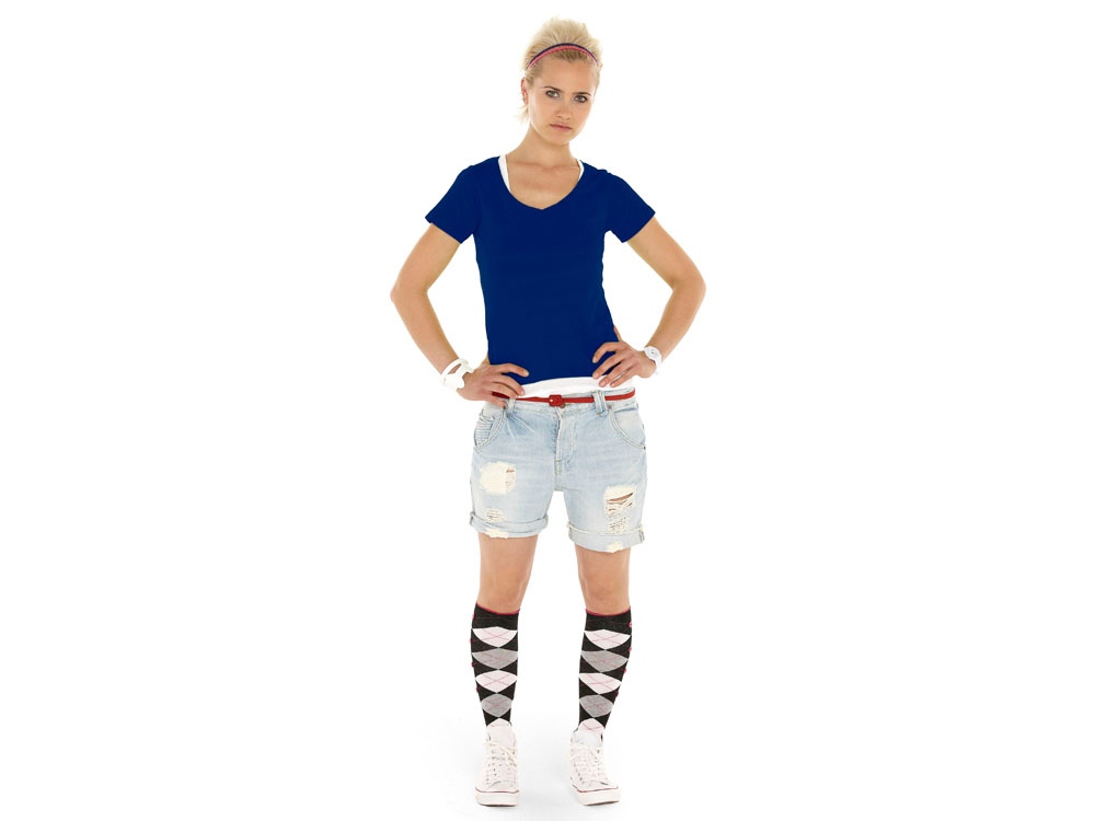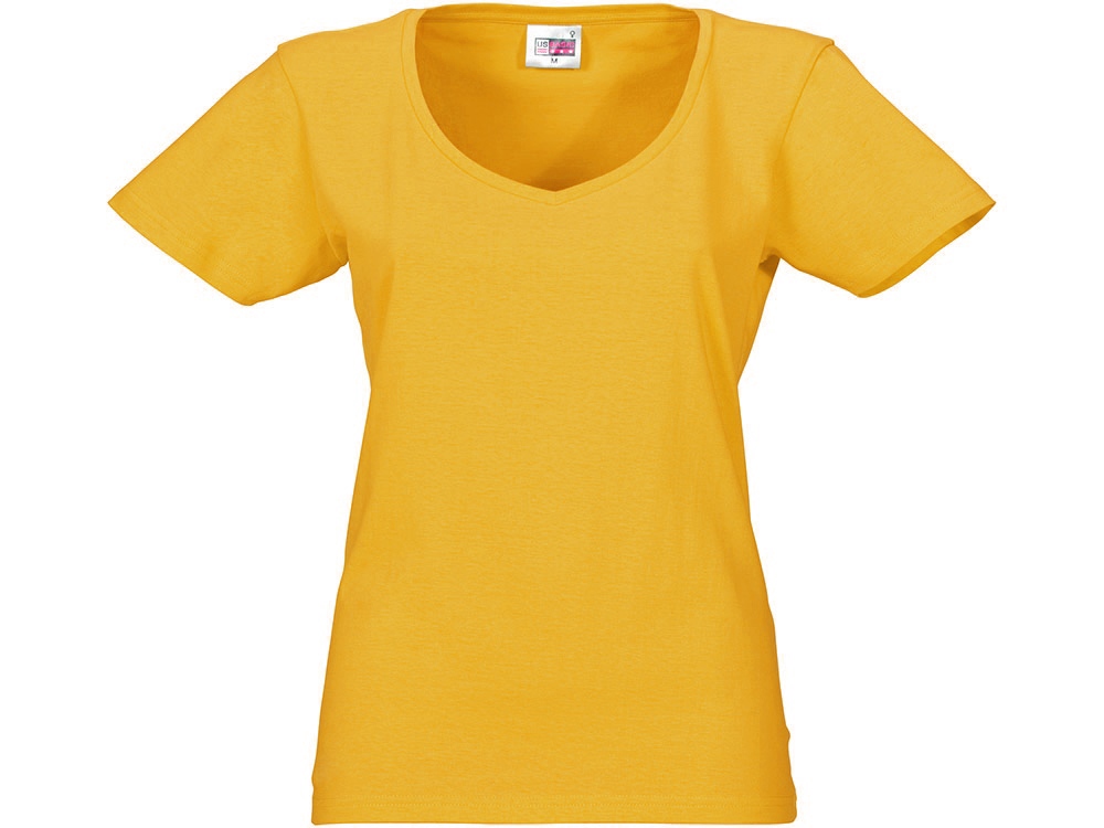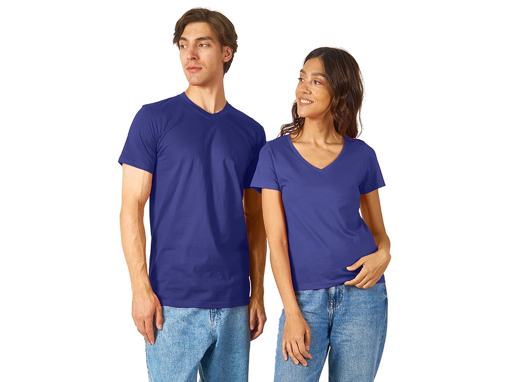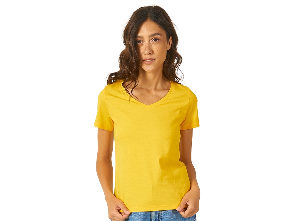 Женская футболка из натурального хлопка с элегантным V-образным вырезом. Материал отлично подходит для нанесения рекламной информации. Натуральная ткань не вызывает раздражения кожи.