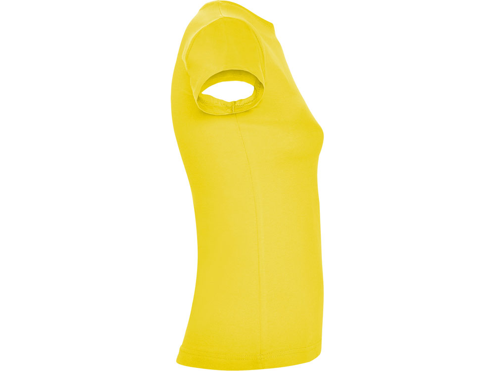 Приталенная женская футболка с боковыми швами и круглым вырезом горловины, двухслойный риб 1х1. Широкая цветовая палитра.