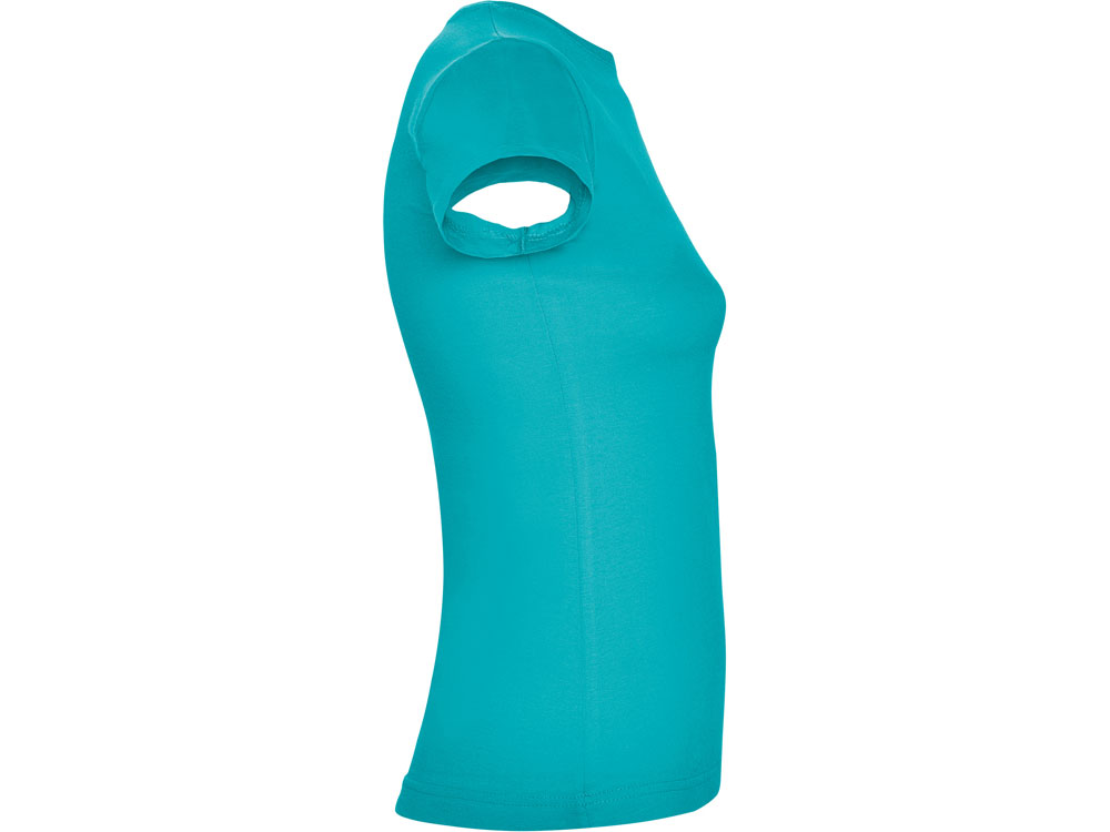 Приталенная женская футболка с боковыми швами и круглым вырезом горловины, двухслойный риб 1х1. Широкая цветовая палитра.