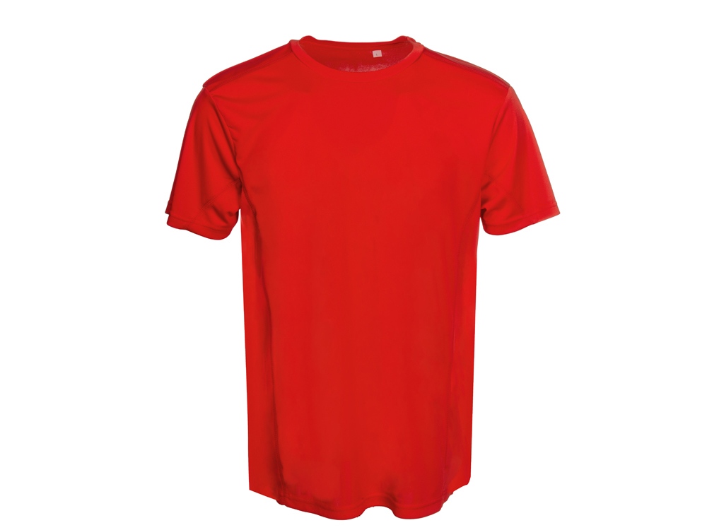 Мужская спортивная футболка выполнена из двух разных видов полотна: спинка и перед из интерлока имеют гладкую поверхность, а декоративные вставки выполнены из спортивной сетки ячеистой структуры. Благодаря наличию таких вставок воздух свободно проникает под футболку, охлаждая кожу во время спортивных нагрузок.