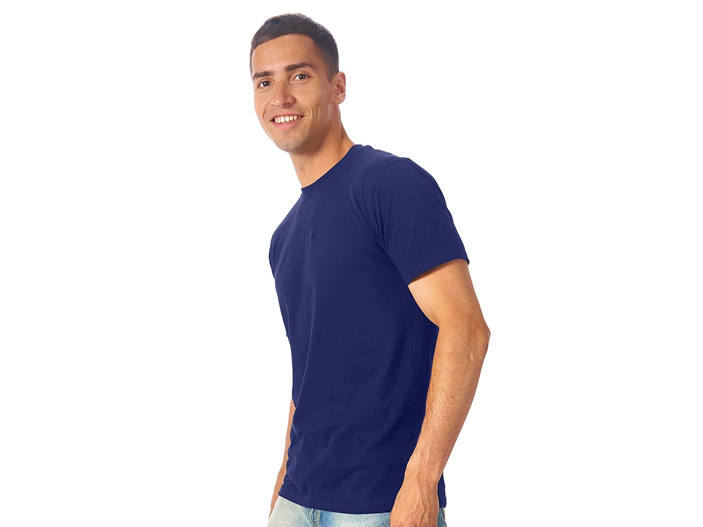 Мужская футболка сшита из натурального хлопка без боковых швов. Отлично подходит для нанесения рекламной информации. Возможна вышивка или трафаретная печать. Натуральный материал не вызывает раздражения кожи.
