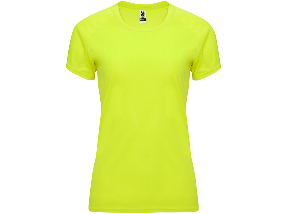 Спортивная футболка с коротким рукавом реглан для женщин. Круглый вырез горловины с отделкой плоским швом. Рукав сложного кроя для обеспечения дополнительного удобства при занятиях спортом. Отделка плоским швом с застилом по пройме и рукавам.