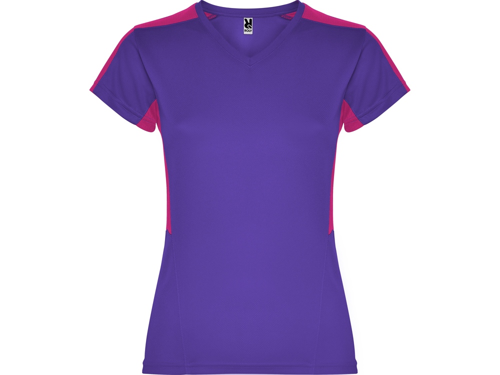 Женская футболка с коротким рукавом. V-образная горловина. Комбинация из 2 полотен контрастного цвета: структурное полотно на полочке и дышащая 3D сетка на плечах и боках.