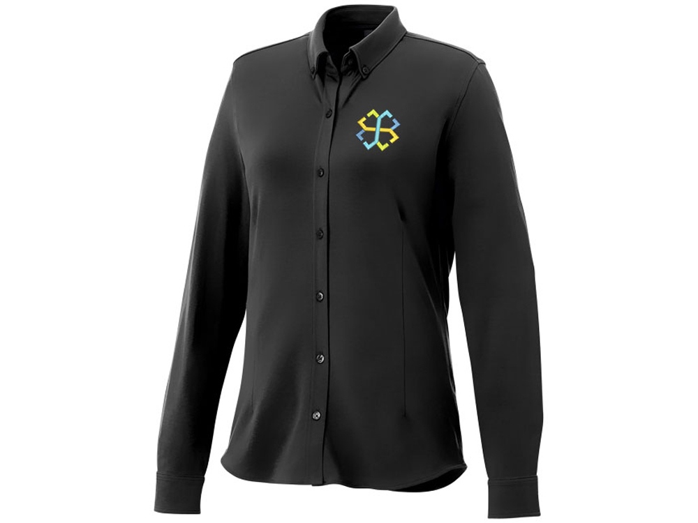 Женская рубашка Bigelow из пике с длинным рукавом. Воротник из ткани изделия. Стрейтч-ткань. Регулируемый манжет на одной пуговице. Воротник на пуговицах. Швы моделирующие фигуру и приталенный крой. Атласная окантовка внутренней части горловины. Гравированные пуговицы в цвет изделия. Тканая метка. Двойное трикотажное пике, 95% хлопок и 5% эластан. 200 г/м².