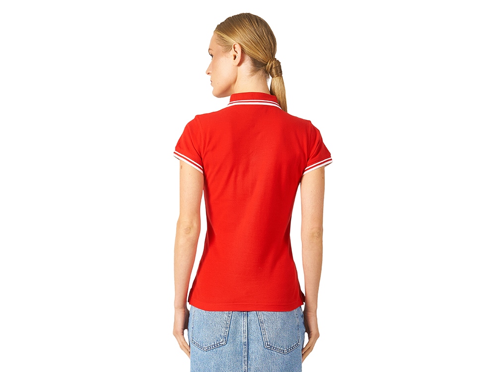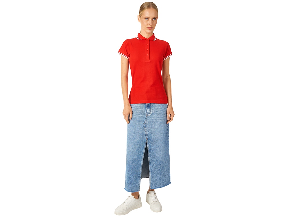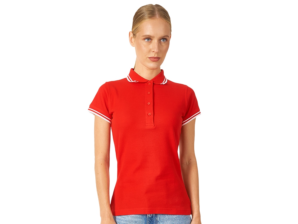 Рубашка-поло Erie с окантовкой. Воротник и манжеты резинка 1х1. Мужская модель с двумя пуговицами, женская - 4 пуговицы в тон изделия. Обшивка внутри воротника. Женская модель с разрезами по бокам. Женская модель приталена. Пике, 100% чесаный хлопок. Плотность 180 г/м2.
