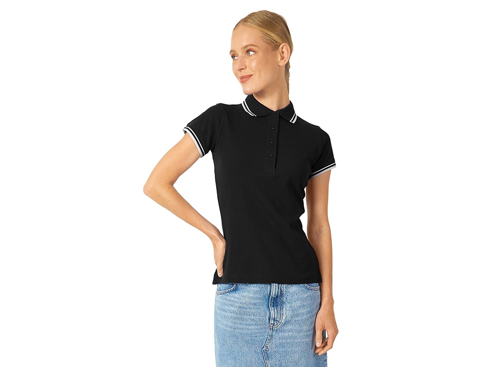 Рубашка-поло Erie с окантовкой. Воротник и манжеты резинка 1х1. Мужская модель с двумя пуговицами, женская - 4 пуговицы в тон изделия. Обшивка внутри воротника. Женская модель с разрезами по бокам. Женская модель приталена. Пике, 100% чесаный хлопок. Плотность 180 г/м2.