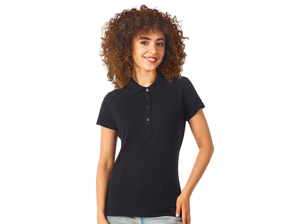 Женская рубашка-поло First. Воротник 1х1. Обшивка внутри воротника. Мужская и детская модели с 2 пуговицами, женская - с 4 пуговицами. Пуговицы с гравировкой в тон. Пике, 100% хлопок. 160 г/м2.