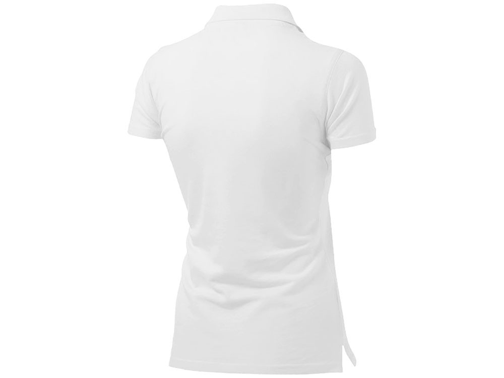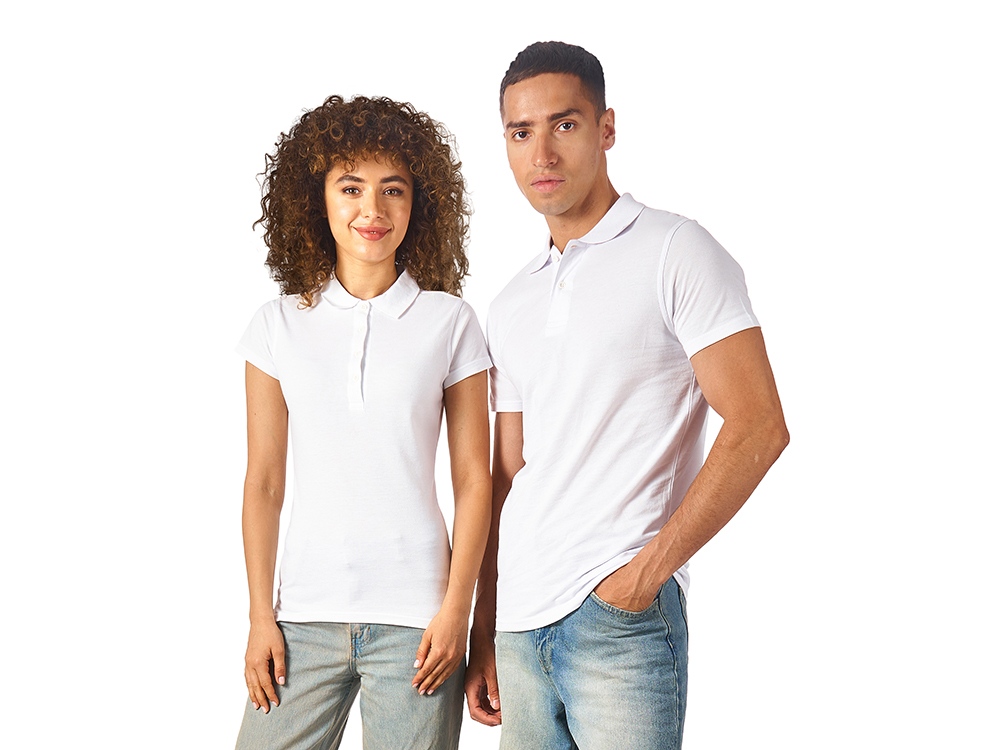 Женская рубашка-поло First. Воротник 1х1. Обшивка внутри воротника. Мужская и детская модели с 2 пуговицами, женская - с 4 пуговицами. Пуговицы с гравировкой в тон. Пике, 100% хлопок. 160 г/м2.