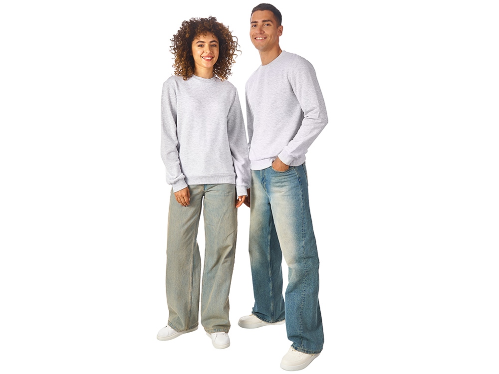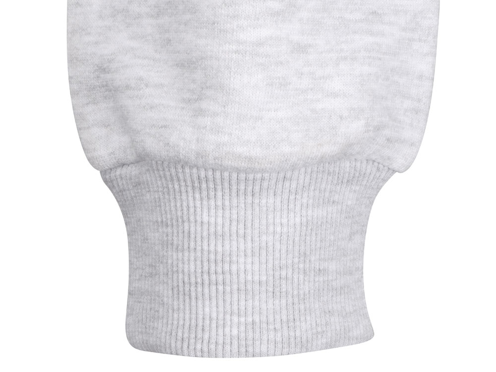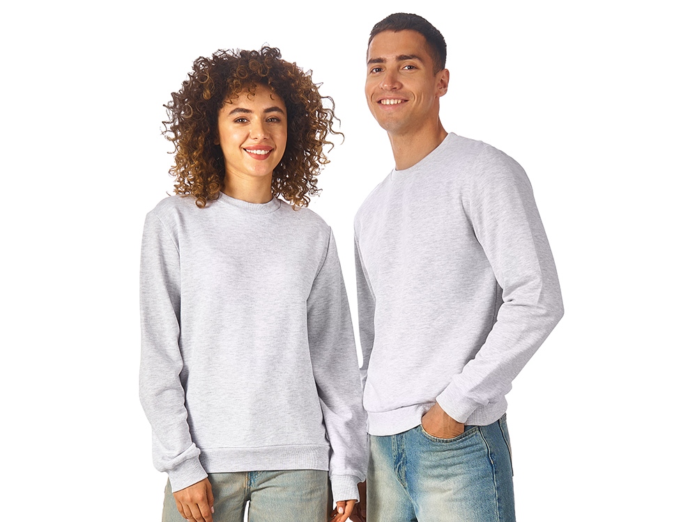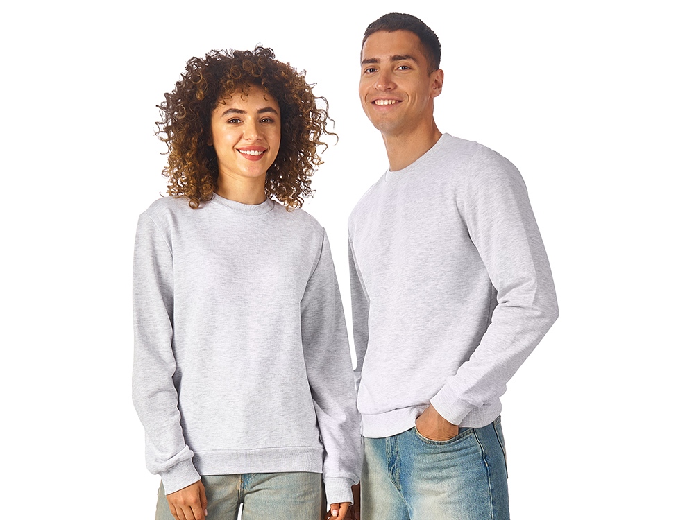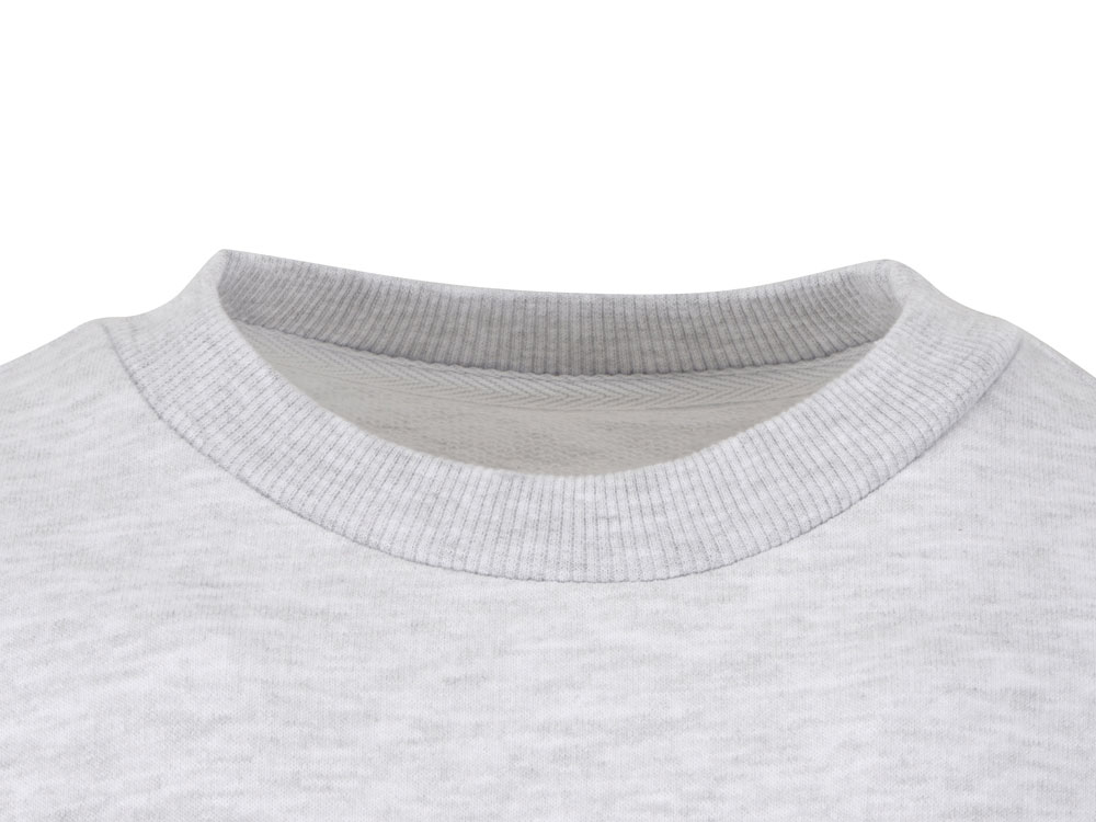 Свитшот из плотного хлопкового футера. Горловина, манжеты и низ отделан рибом 2х2. Горловина спинки внутри дополнительно укреплена тесьмой с выработкой елочка. Полотно из утяжеленного хлопкового футера внутри с петельками без начеса.