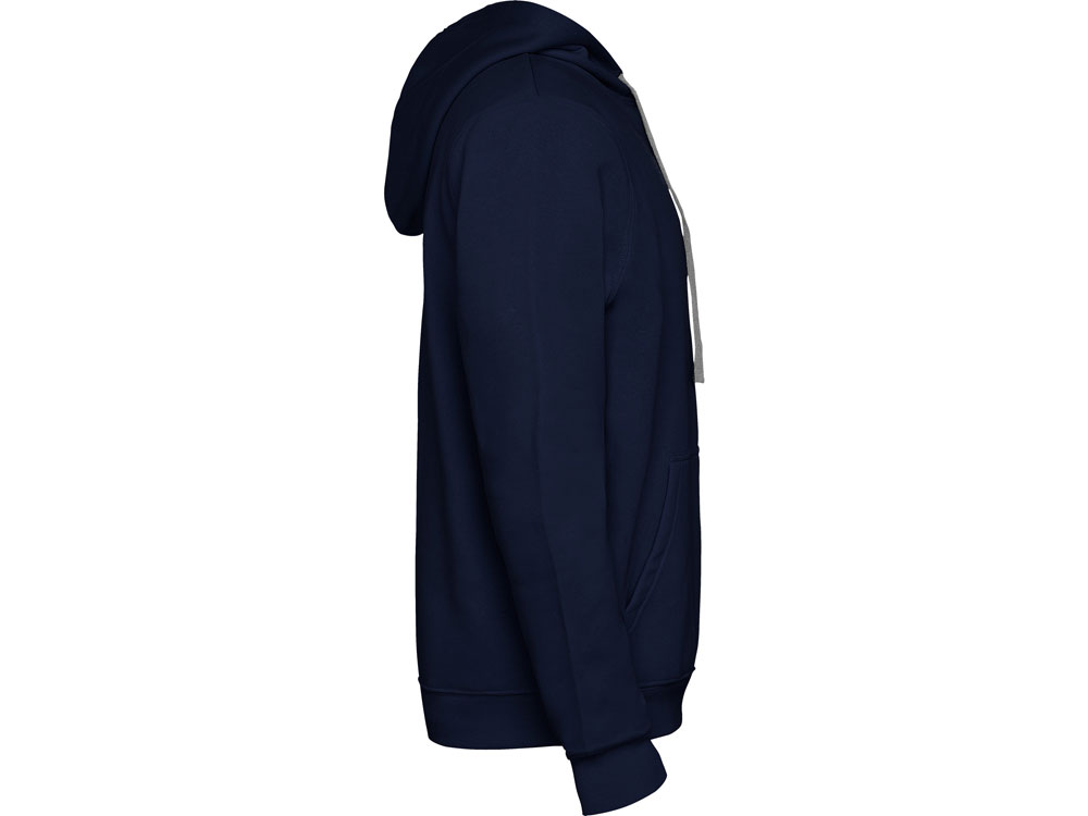 Худи с капюшоном и шнурками. Отделка горловины спинки внутри тесьмой, Риб 1х1 по низу изделия и манжетам. Карман кенгуру.