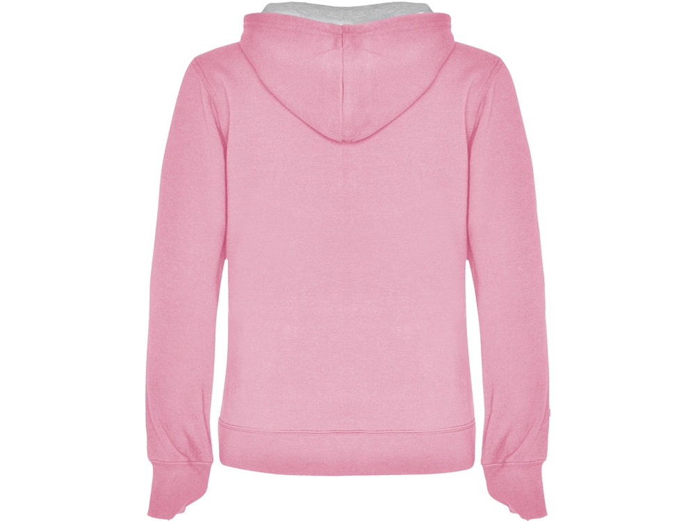Худи с капюшоном и шнурками. Отделка горловины спинки внутри тесьмой, Риб 1х1 по низу изделия и манжетам. Карман кенгуру. На манжетах вырез под большой палец