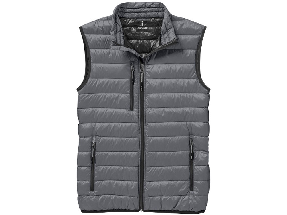 Пуховая жилетка Fairview. Стандартный покрой. Ткань не пропускает пух. Карманы для рук и нагрудный на молнии. Внутренний противоветровой клапан и защита подбородка. Эластичная обшивка внизу и на проймах. Ткань дышащая, ветронепроницаемая и влагоотталкивающая. Отражающий лого сзади. Ремешки на собачку (второй комплект в цвете антрацит). Жилет - версия победителя премии Reddot, куртки Scotia. Ткань из 100% нейлона с матовым и блестящим водоотталкивающим покрытием, 20D. 80% пух и 20% перо.