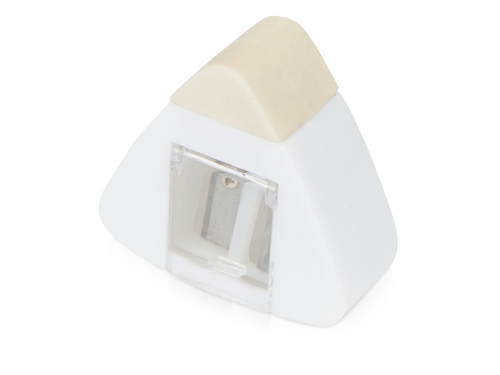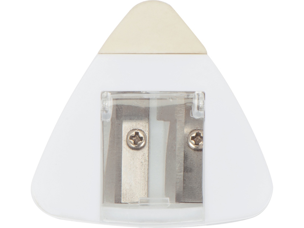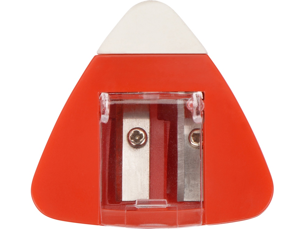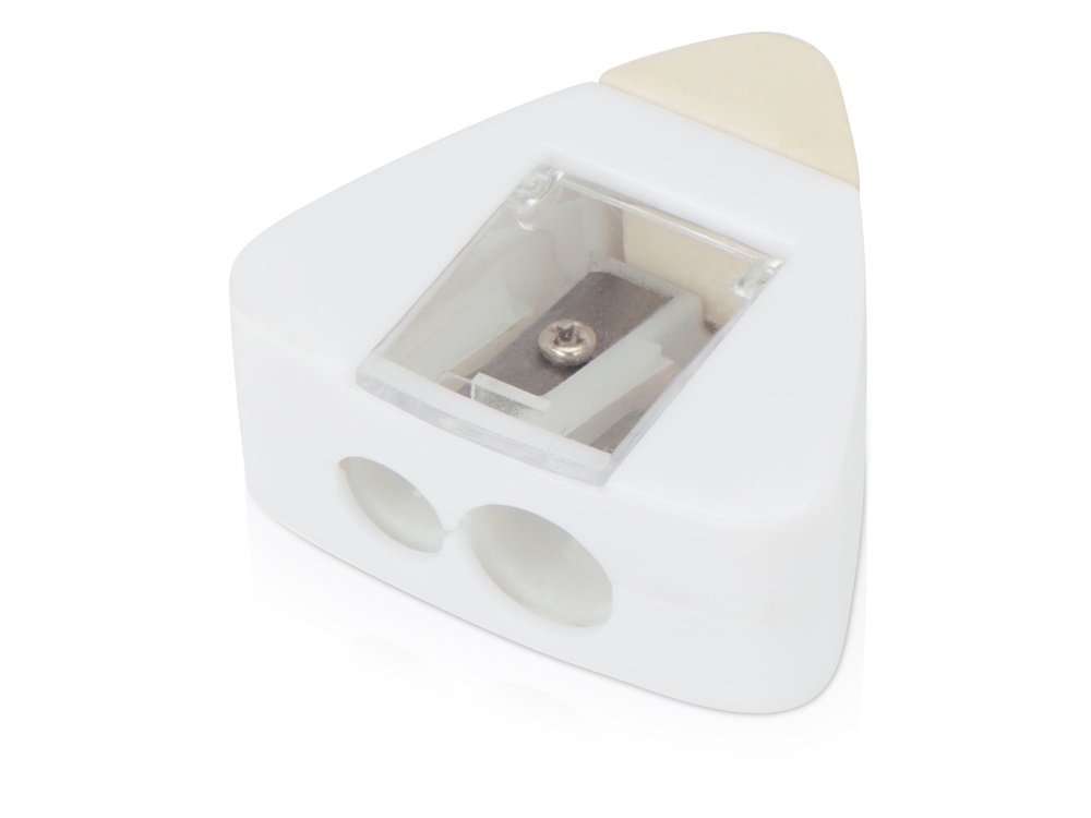 Точилка для карандашей разного диаметра и ластик в одном корпусе. Большое поле для нанесения логотипа.