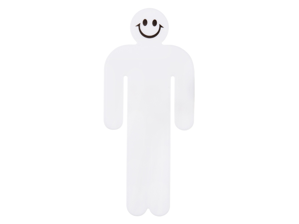 Закладка для книг Он выполнена в форме улыбающегося мальчика. Плоская пластиковая основа идеально подходит для нанесения логотипов и иных рекламных материалов.