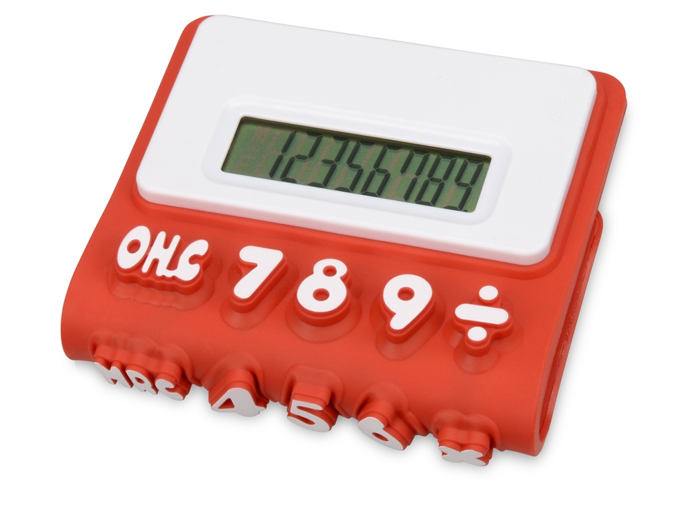 Гибкий калькулятор Splitz. Гибкий 8-разрядный калькулятор с белой отделкой, рельефными клавишами и функцией памяти. Батарейка включена в комплект. Силикон.