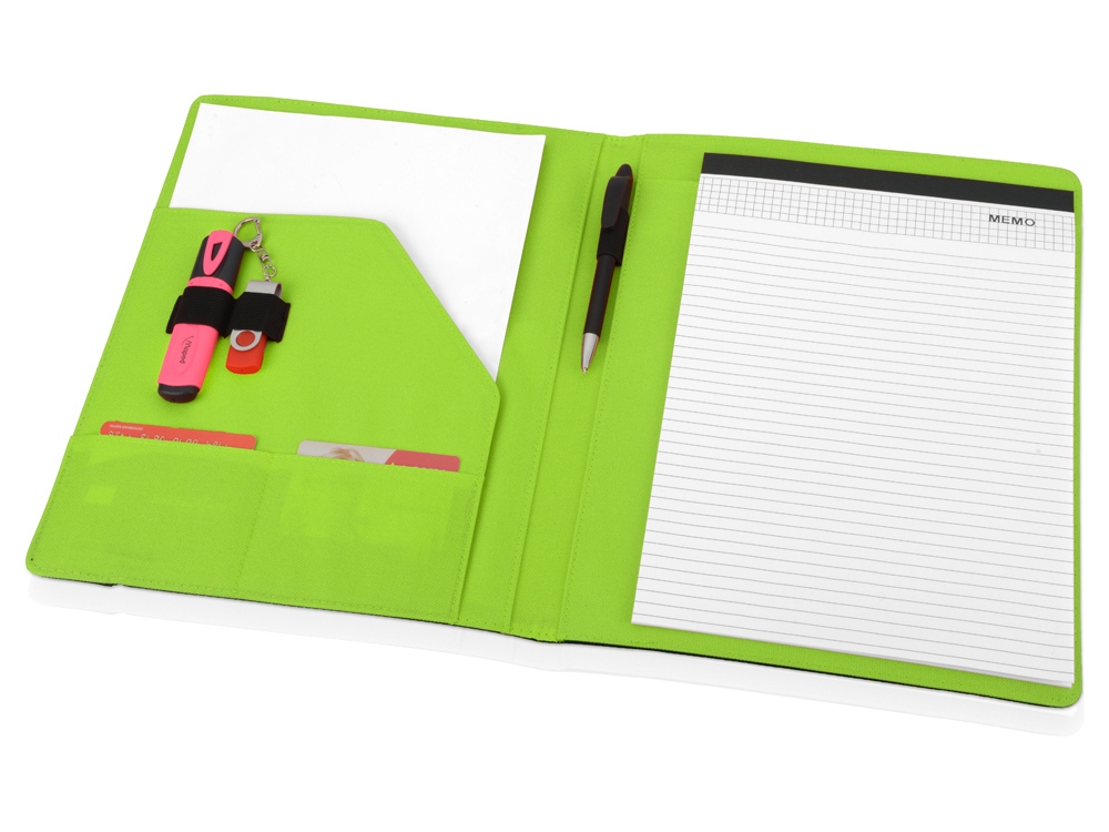 Папка позволит не только аккуратно перевозить необходимые документы, но и своевременно делать заметки во время переговоров благодаря блокноту на 20 листов. Отличная идея для подарка сотрудникам организации.