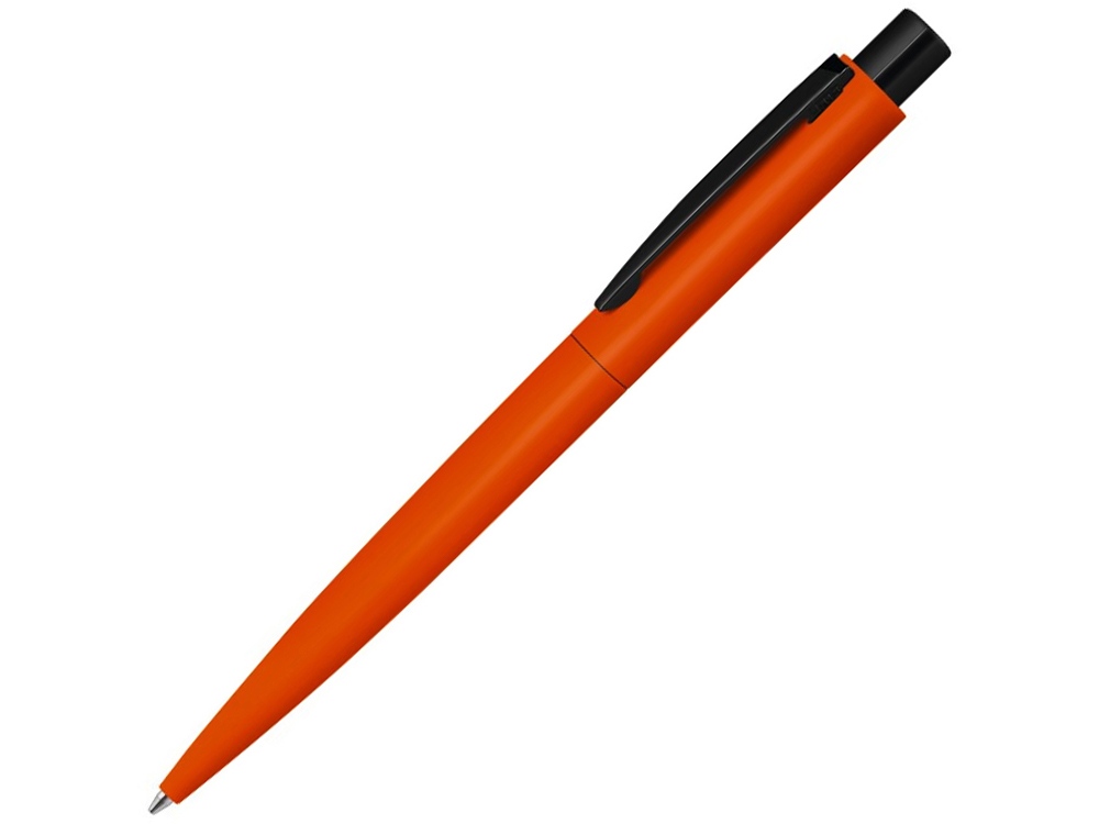 Металлическая шариковая ручка с нажимным механизмом в матовом корпусе soft touch. Металлический клип и кнопка выполнены в черном глянце.