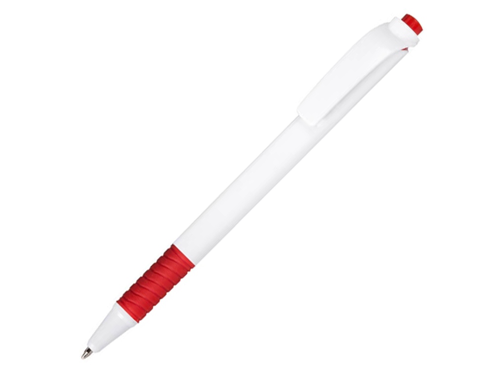 Шариковая Эрнхардт функциональный промо-сувенир для любого мероприятия. Белый пластиковый корпус прекрасно подходит для нанесения логотипа, а благодаря каучуковой резинке в основании писать ею очень удобно.