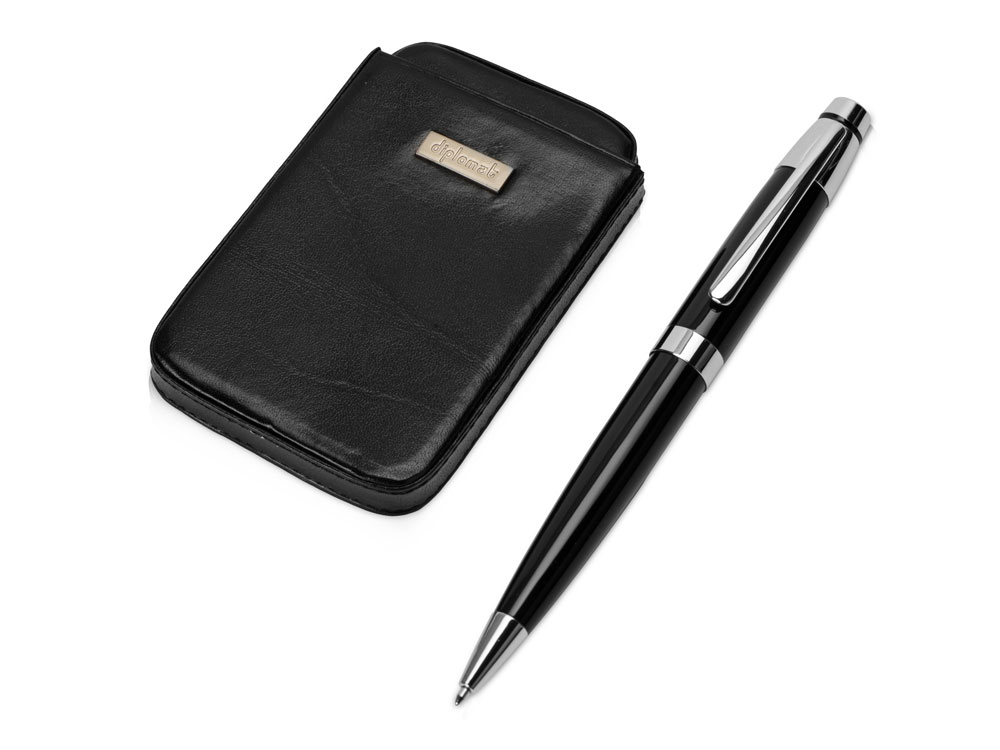 Отличный подарочный набор для успешных мужчин. В комплекте небольшая визитница, выполненная из натуральной кожи, и металлическая шариковая ручка с поворотным механизмом. Набор упакован в фирменную коробку.