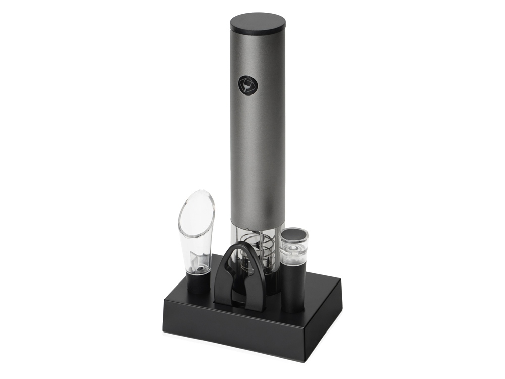 Штопор подзаряжается от док-станции, которая позволяет эффектно разместить винные аксессуары из набора, а также при использовании штопор подсвечивается, что прекрасно видно сквозь прозрачную нижнюю часть — превратите подготовку вина в настоящее зрелище! От вас не требуется никаких усилий: просто правильно разместите штопор поверх горлышка и слегка прикоснитесь к сенсорной кнопке, а если процесс не кажется вам очевидным — поможет инструкция, которая приложена к набору. О том, насколько штопор заряжен, расскажет цвет индикатора заряда: зеленый (полностью заряжен), синий (достаточно заряжен) или красный (требуется зарядка). Кстати, штопор можно использовать и с батарейками типа АА (4 штуки), но с ними запрещается устанавливать штопор на док-станцию.
