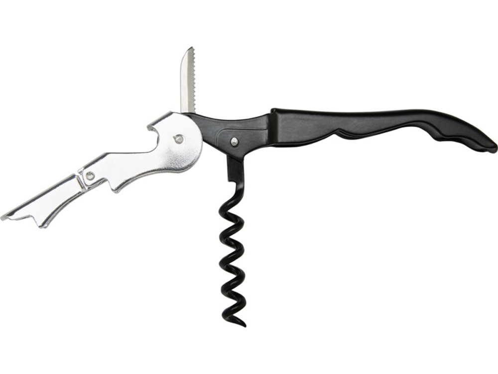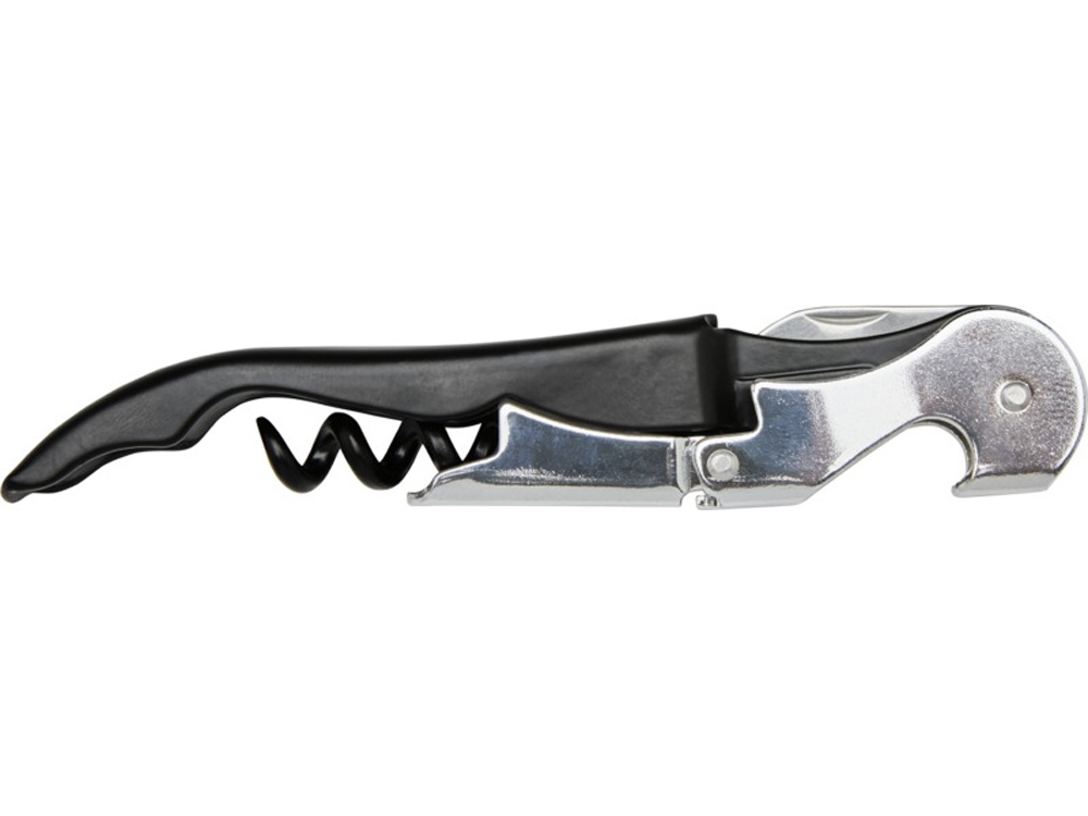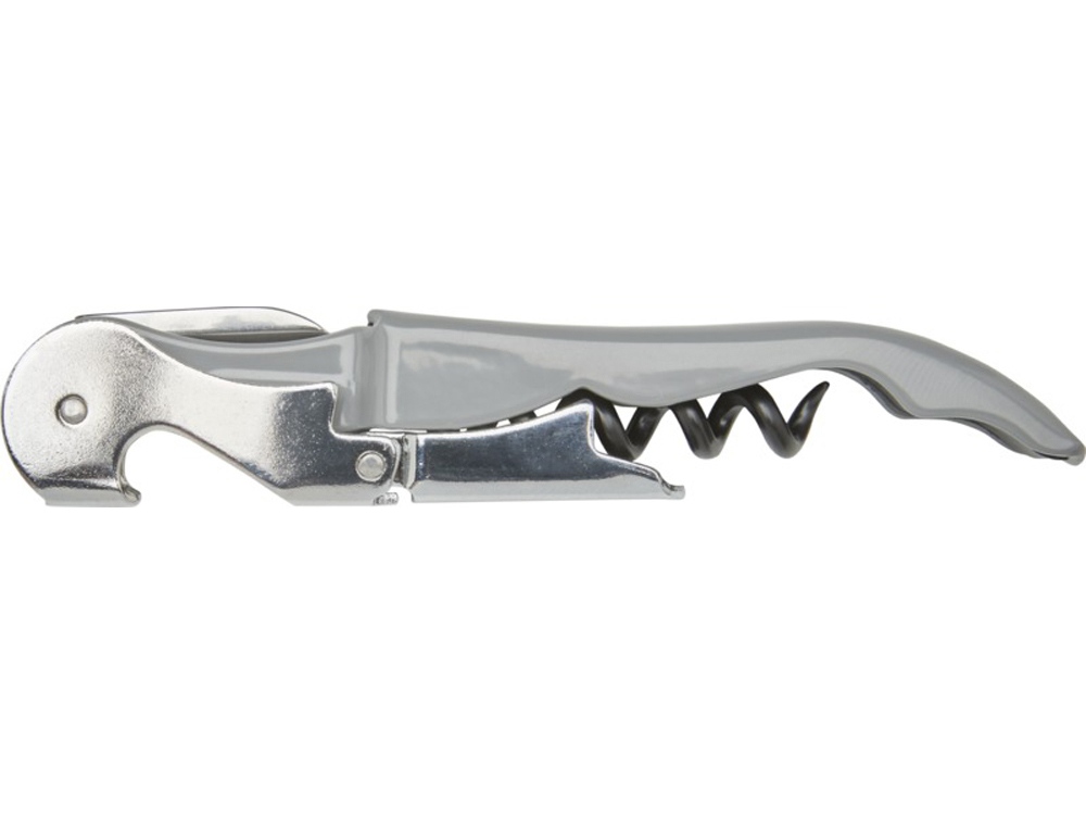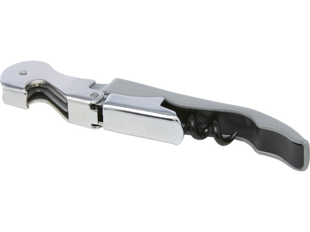 Нож официанта из нержавеющей стали с цветным корпусом со штопором, обрезчиком для фольги и открывалкой для бутылок. Благодаря двухступенчатой конструкции с его помощью вытащить пробку из бутылки не составит труда.