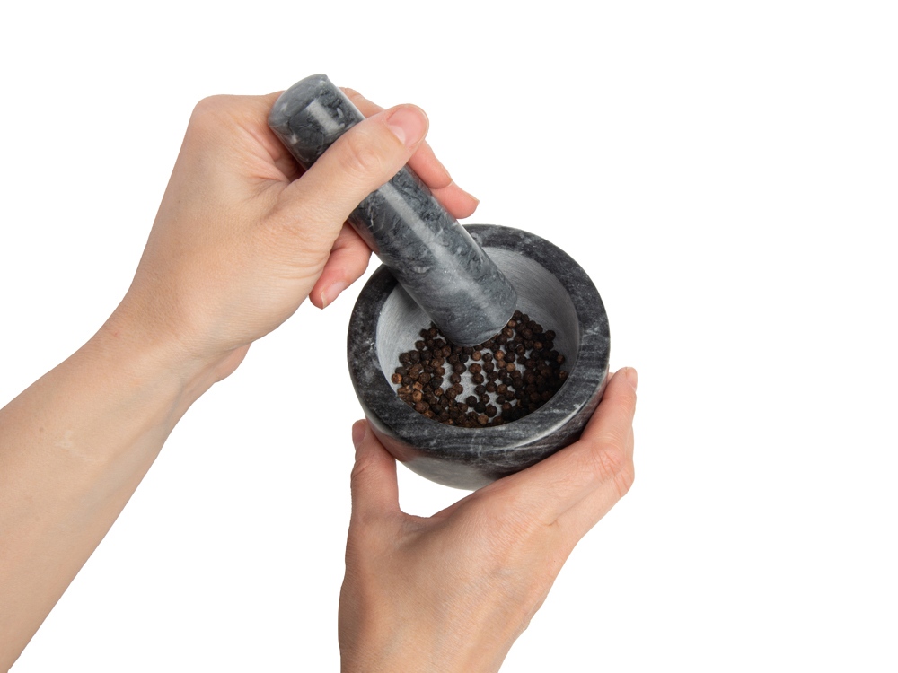 Ступка из натурального мрамора Pesto — по-настоящему благородное дополнение вашей кухни, которое не только украсит ее, но и пригодится при готовке. Материал не впитывает запахи, легко моется, имеет приятную текстуру и выглядит действительно достойно.