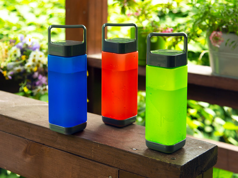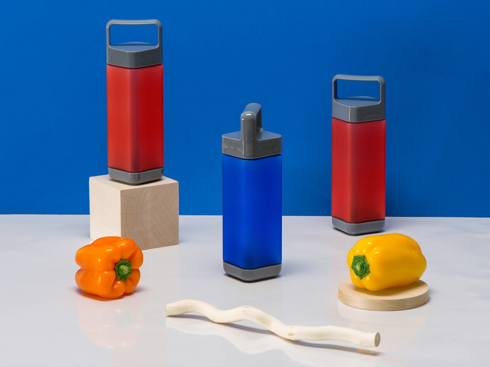 Бутылка запоминающейся четырехгранной формы. Корпус сделан из пищевого пластика - поликарбоната. Покрытие корпуса soft touch делает бутылку не только приятной на вид, но и на ощупь. Подходит для напитков с температурой до 60 °C. Объем 650 мл.